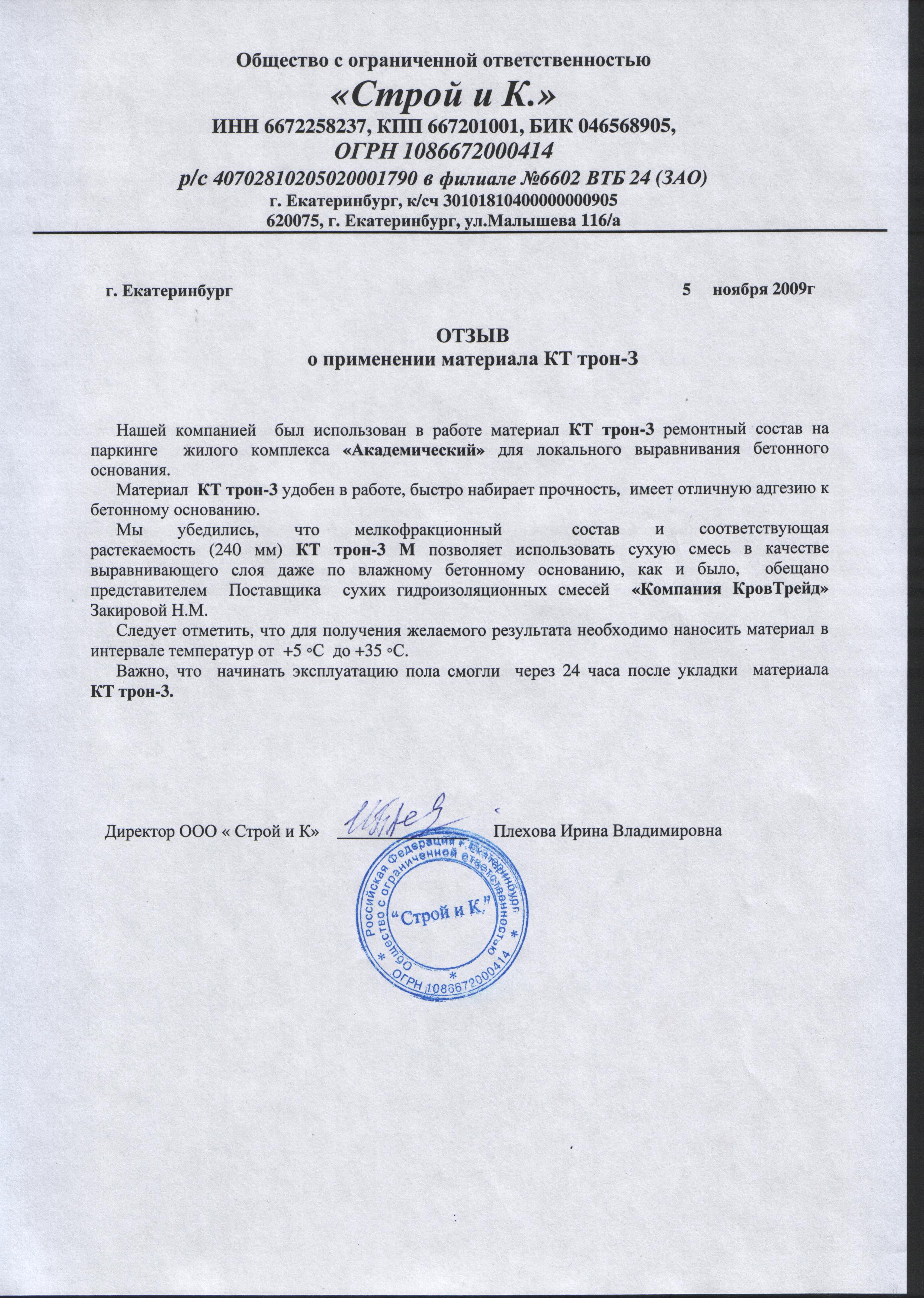 - СПбГАСУ - протокол испытаний №4088/02 на тиксотропные ремонтные материалы КТтрон