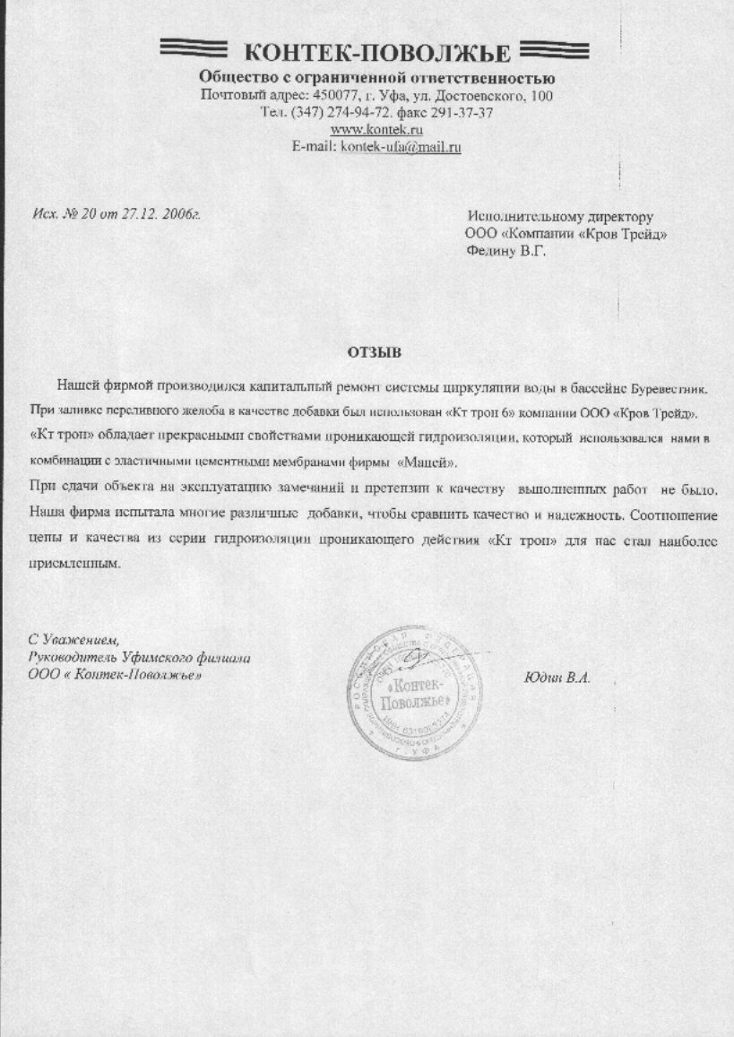 - КТтрон–РХ61 (тонкодисперсный тиксотропный состав с повышенной водонепроницаемостью для финишного выравнивания бетонных и каменных поверхностей при ремонте и новом строительстве)