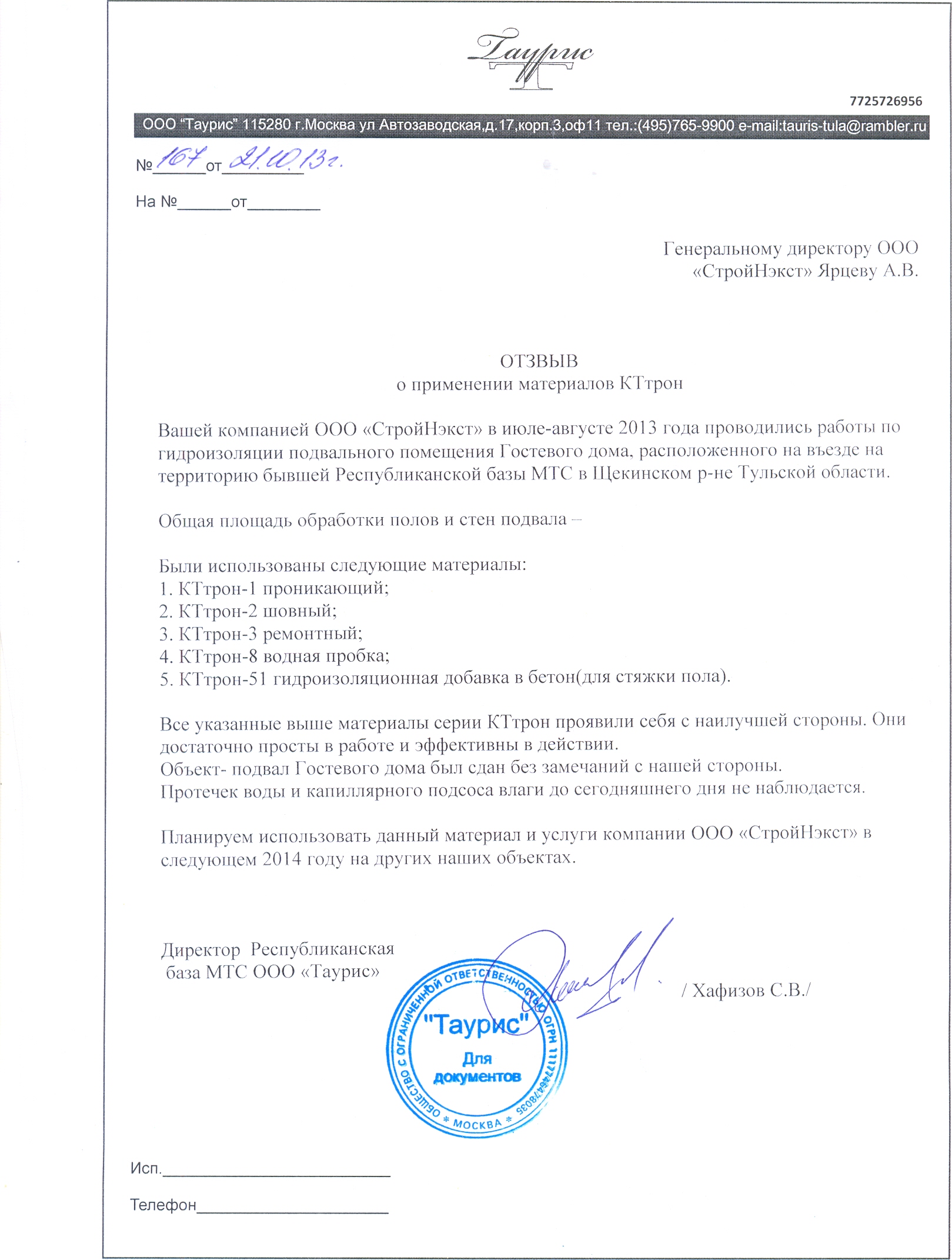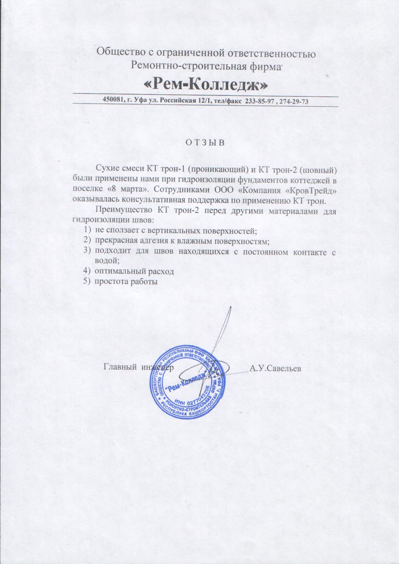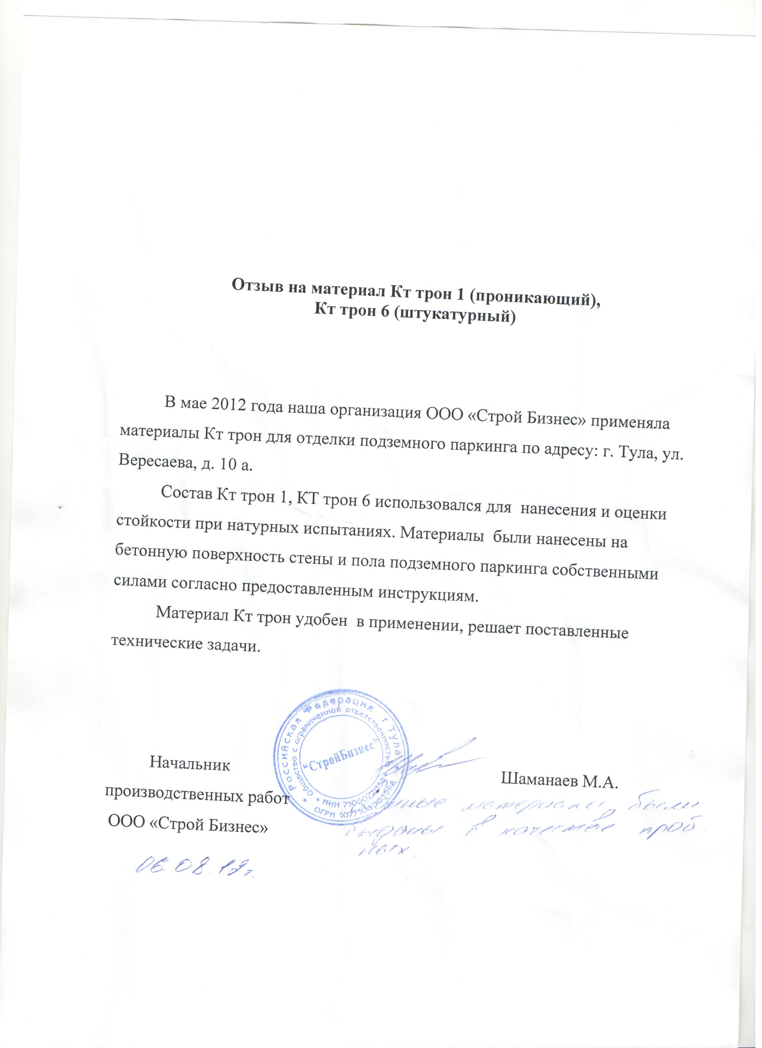 - НИИЖБ - заключение №154-13-4-15 на материалы КТтрон-1, КТтрон-10 1К