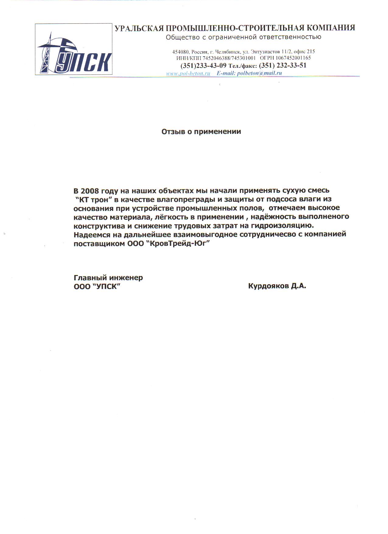 Уральская промышленно-строительная компания г.Челябинск